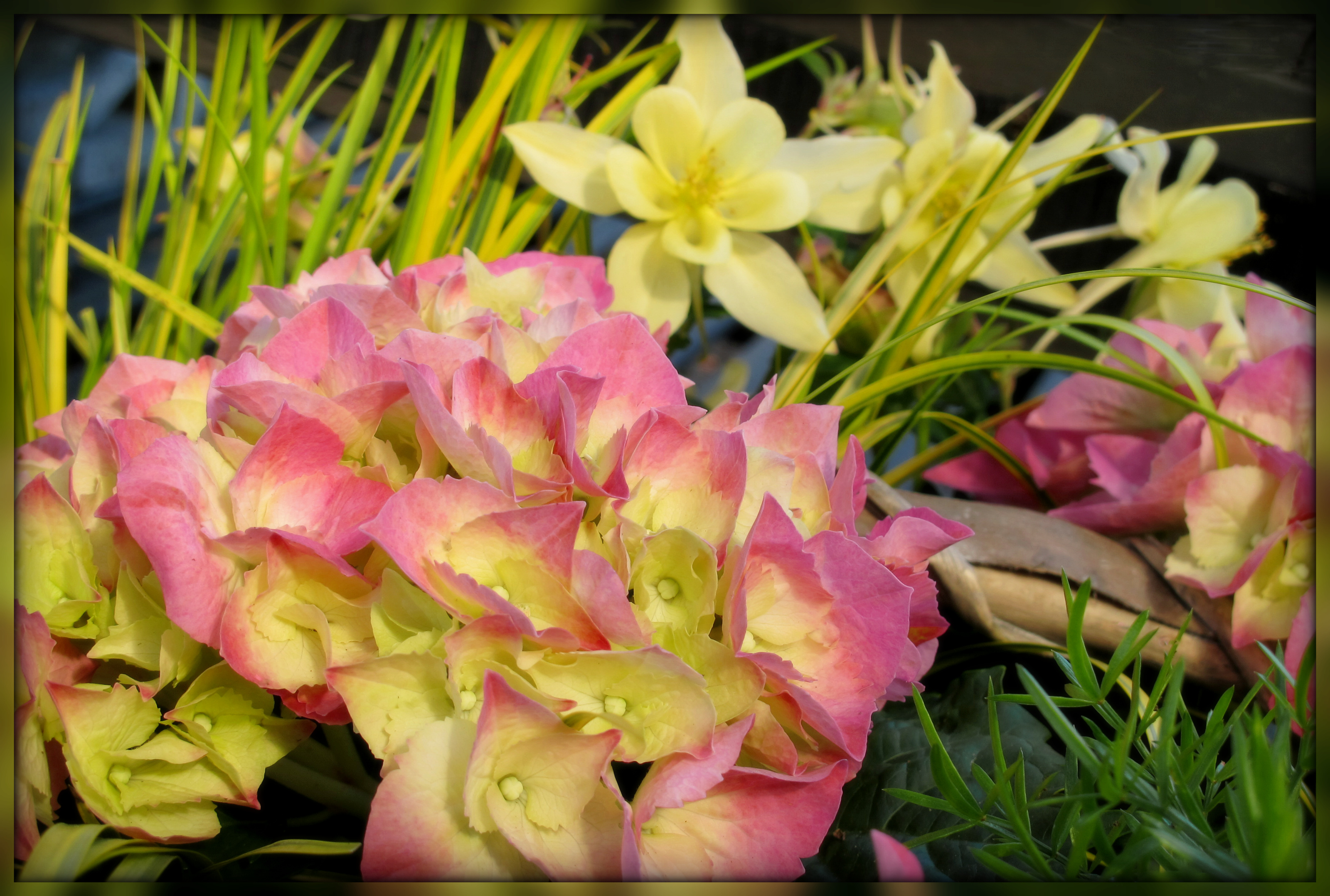 Another of the newly planted baskets I've seen recently in my village. This one was very interesting as it had a columbine planted in it along with the hydrangea - something I've not seen in a basket before. Of course it was an enormous basket.