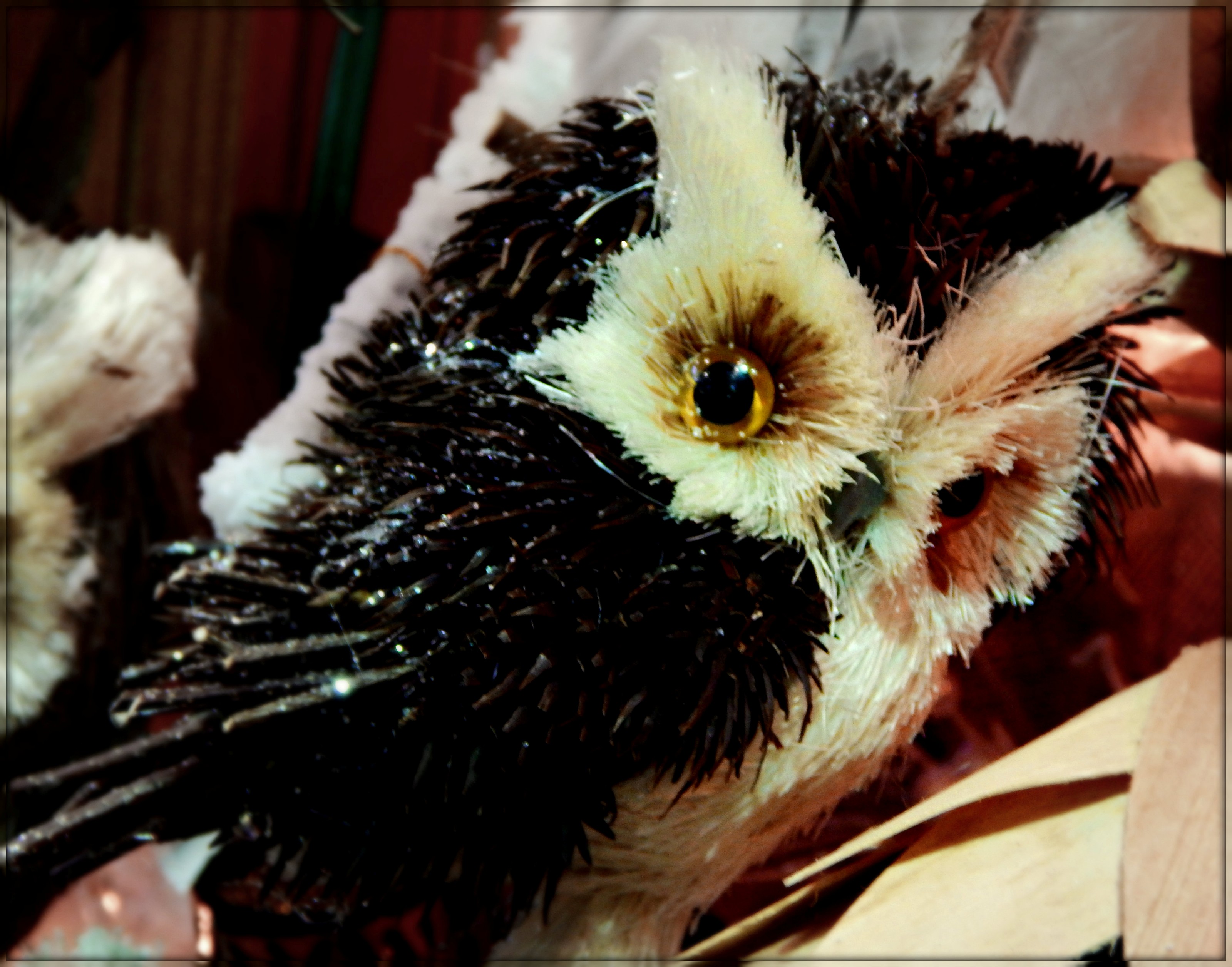 This was from an entire tree decorated with owls of all sorts and wood shavings. It was very unique and a little creepy with hundreds of those eyes staring back!