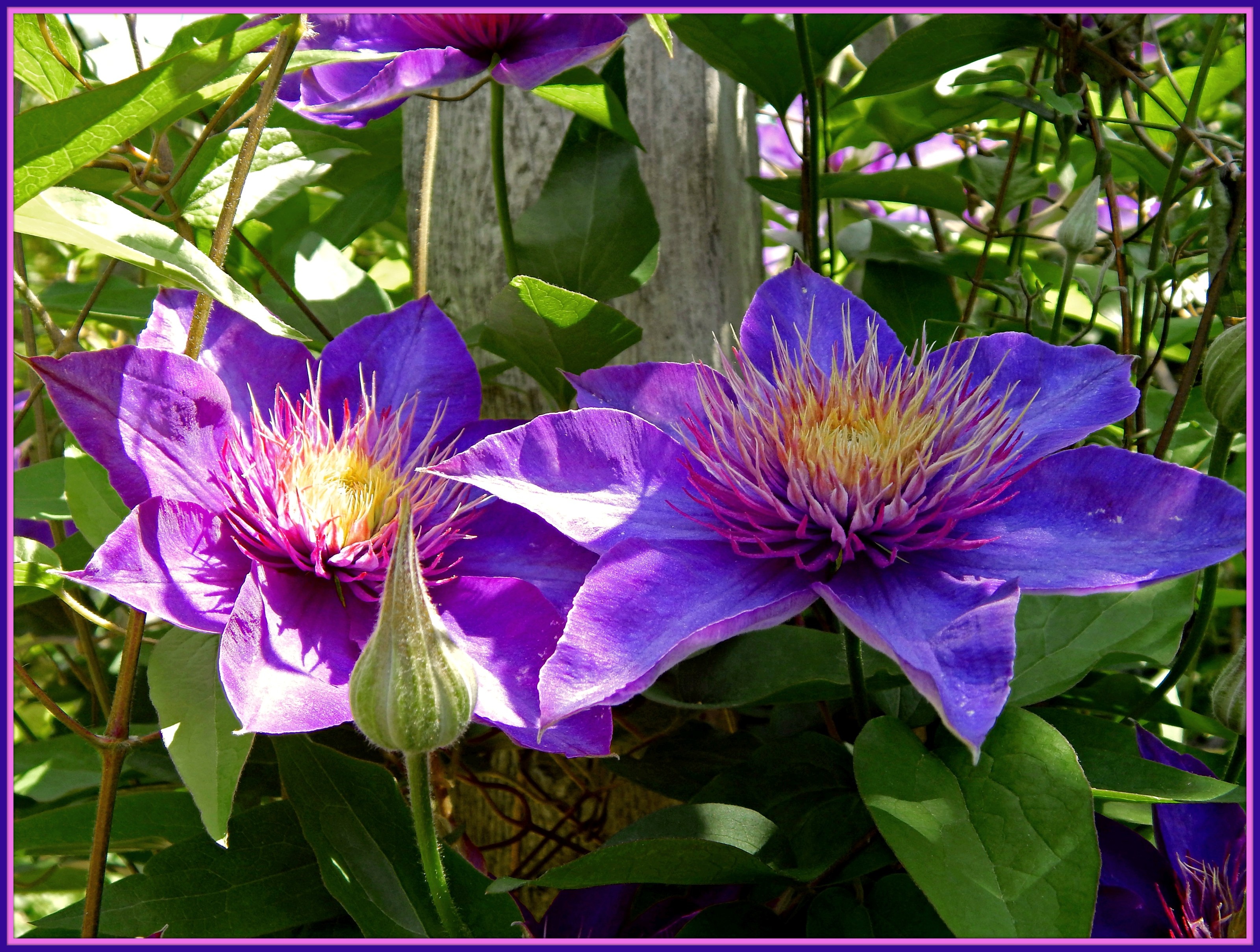 I posted the beautiful center of this clematis yesterday and promised the full flowers today. Here they are as promised. I just got home form Wisconsin a little while ago so I'll be catching up on comments tonight.