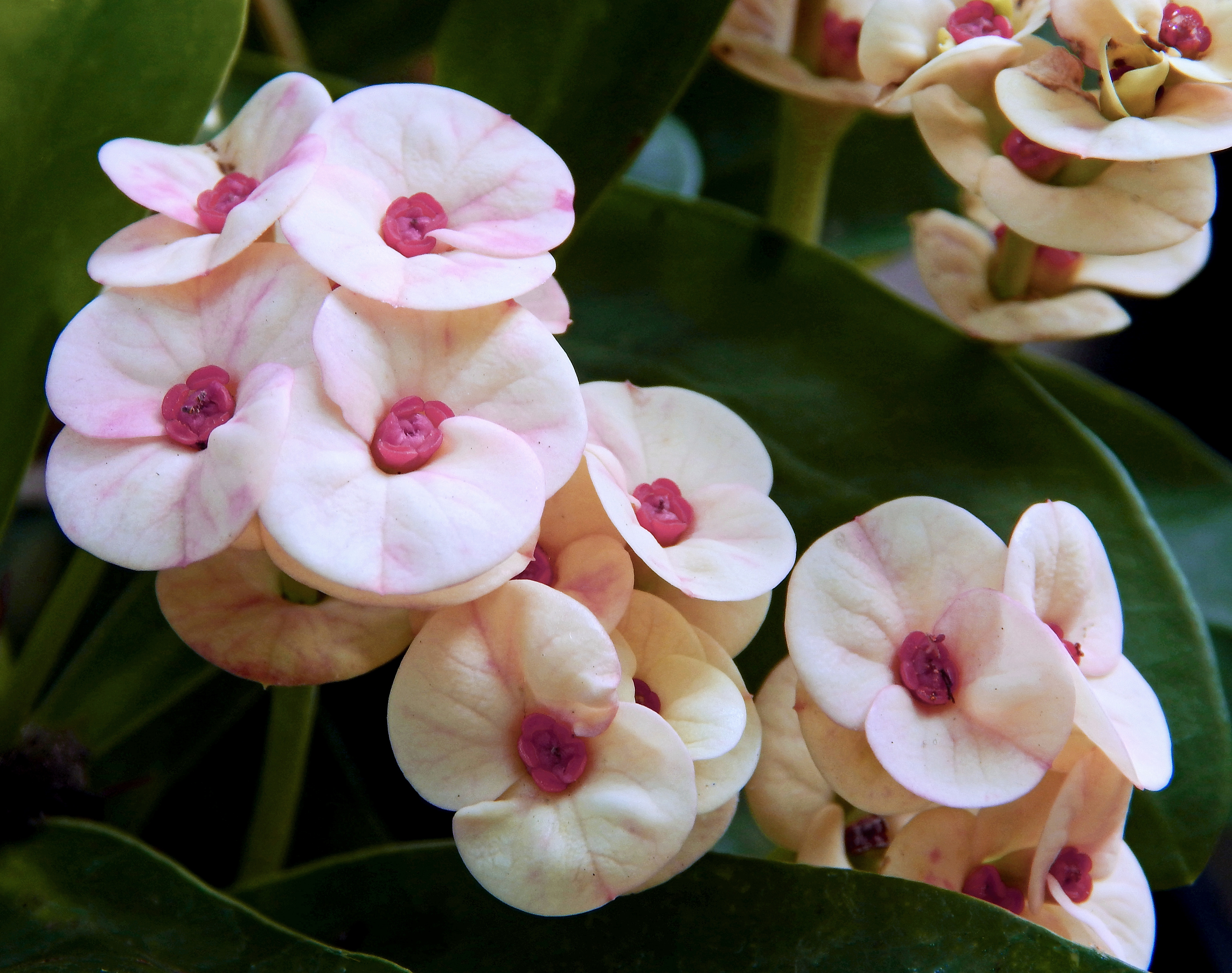 Also known as Euphorbia Milii - I usually see them in red but this color combo was more unusual with bigger flowers not that they are huge - only about 1-1 1/2" across.